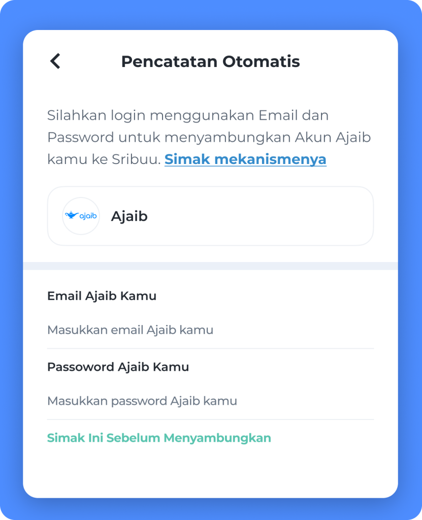 5. Untuk menghubungkan Ajaib, ikuti flow input email & password akun Ajaib