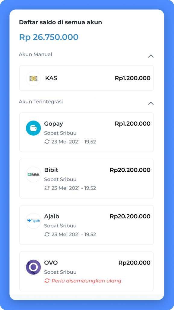 7. Hubungkan ulang akun secara berkala untuk data terbaru